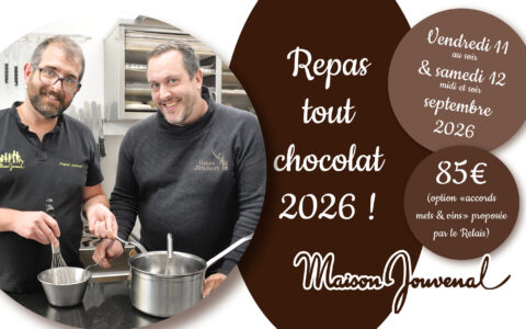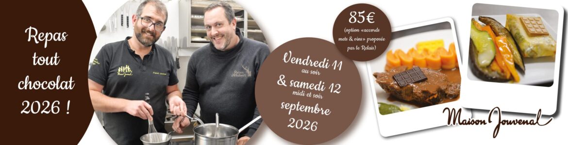 La Maison Jouvenal au Relais Saint-Hubert Tous les 4 ans, la Maison Jouvenal organise un Repas tout Chocolat. Pour cette nouvelle édition, nous aurons le plaisir de le préparer avec et chez Alexis... Pour en savoir plus