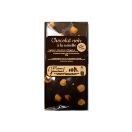 Notre chocolat au lait de couverture = Pâte de cacao 38%, poudre de lait entier, sucre, beurre de cacao, lécithine de colza, vanille Bourbon en gousse.