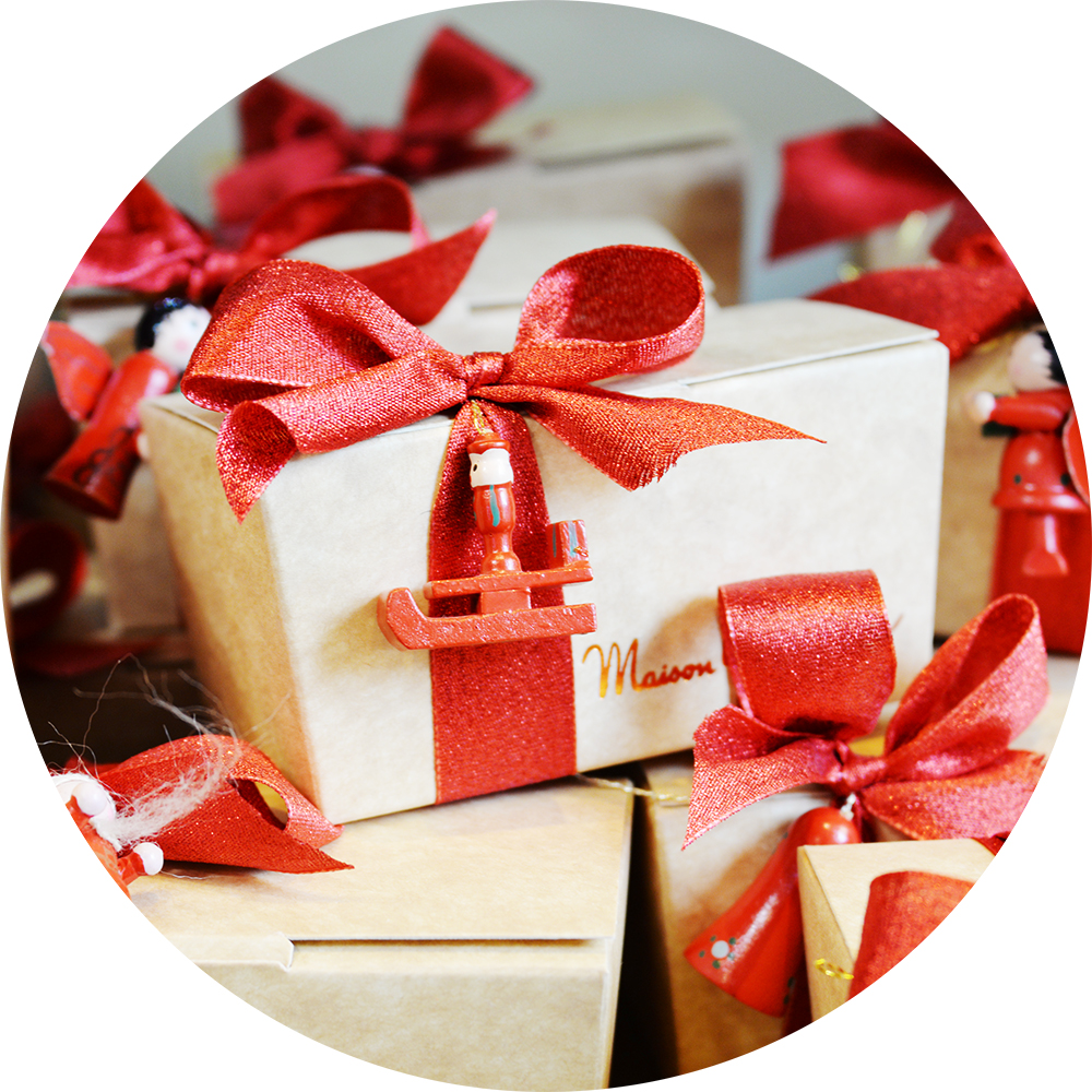 Selon les sortes : pâte cacao, sucre, beurre de cacao, écorces d’orange, sirop de glucose-fructose, dextrose, gousses de vanille, poudre de cacao, gingembre, crème, beurre laitier, beurre concentré, lait, lait entier en poudre, lait écrémé en poudre, sucre du lait, protéines de lait, purée de citron, jus de citron, concentré de citron, purée de mandarine, purée de clémentine corse, purée de framboise, purée de coco râpée, noix de coco en poudre, purée de passion, concentré de passion, framboise, pectine jaune, glucose atomisé, eau, acide citrique, konjac, sucre inverti, cannelle, gingembre, grains de café, huile de tournesol, thé earl grey, noisettes, amandes, pistaches, cacahuètes, noix, pâte de pistache, farine de blé, fleur de sel, sorbitol, pâte de pistache, extrait de malt (orge), poudre à lever, bicarbonate de sodium, rhum blanc des Caraïbes, arôme noix de coco, lécithine de soja, lécithine de colza, sel, glycerol, acide sorbique, kirsch, colorants : oxyde de fer, spiruline, tartrazine, jaune soleil, rouge allura, oxyde de fer.