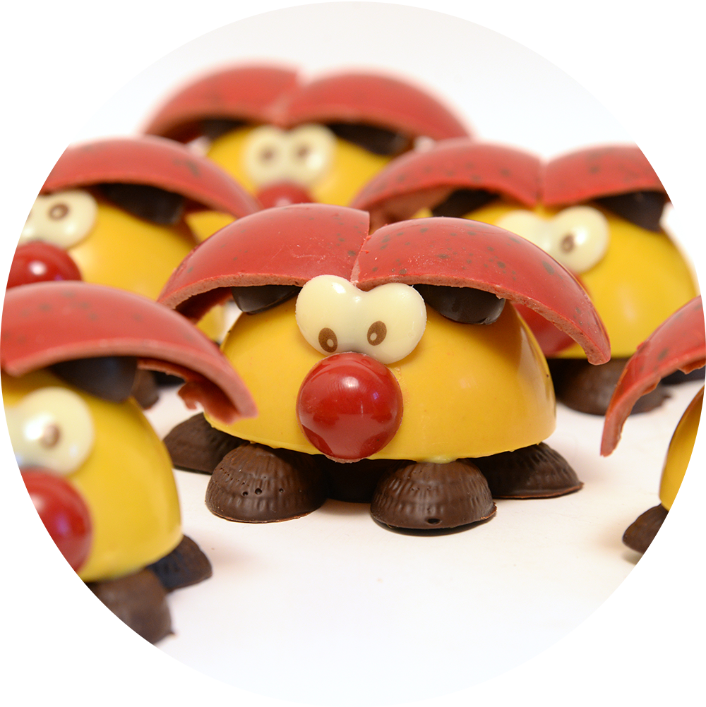 Ingrédients : pâte de cacao, sucre, beurre de cacao, lécithine de colza, lait entier en poudre, lait écrémé en poudre, vanille bourbon en gousse, poudre de framboise, poudre de citron, arôme naturel de vanille, cacao maigre en poudre, colorants : tartrazine et rouge allura, oxyde de fer.